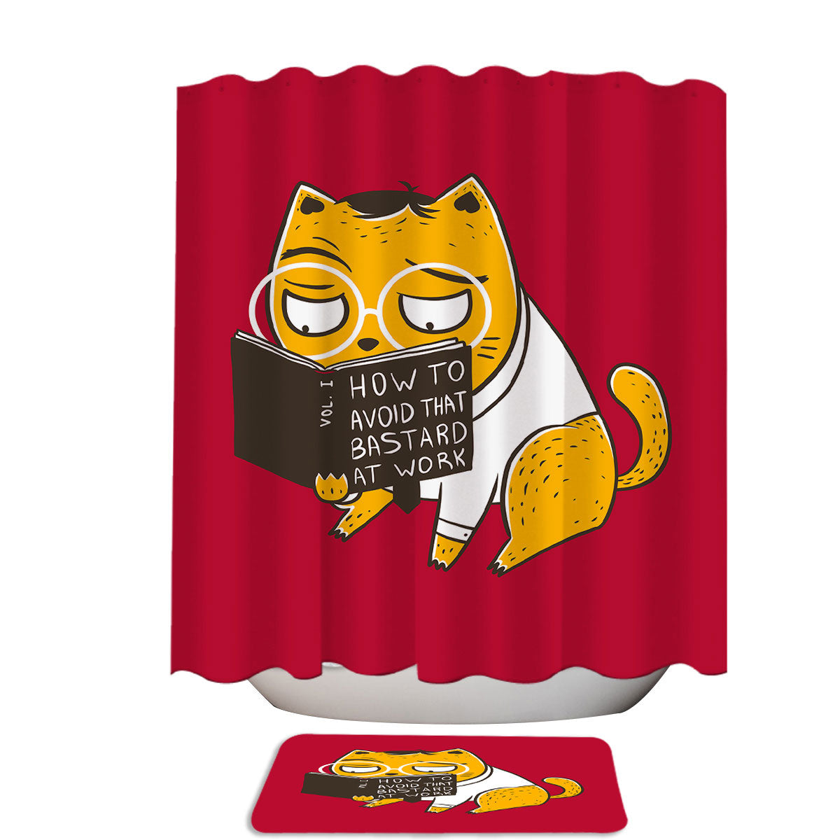Cat Funny Book Avoid That Bastard at Work Shower Curtain