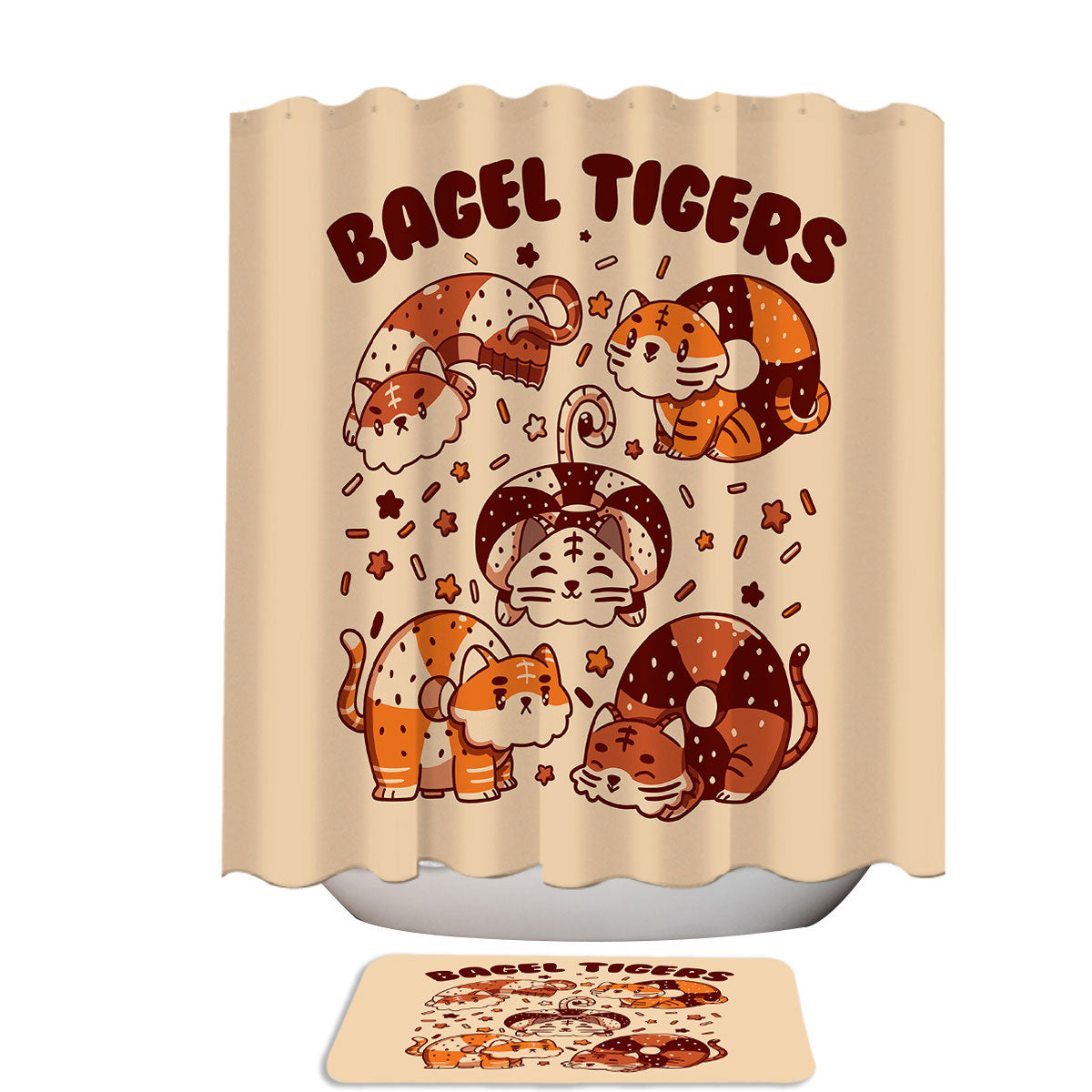 Funny Animals Breakfast Bagel Tigers Shower Curtain