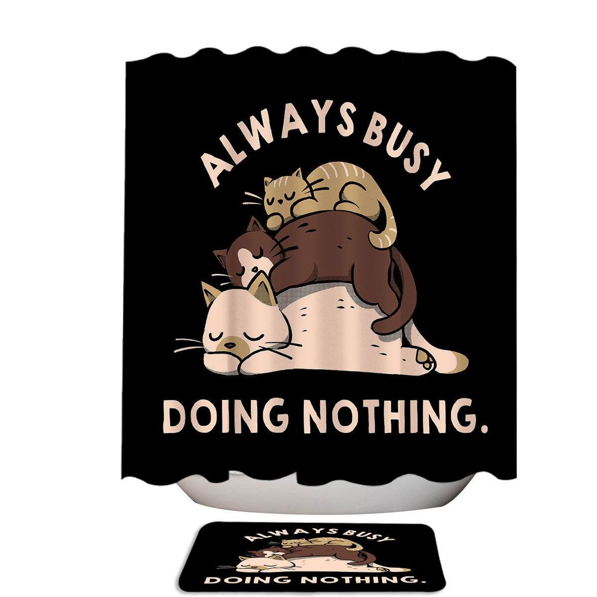 Funny Cat Quote Always Busy Doing Nothing Shower Curtain