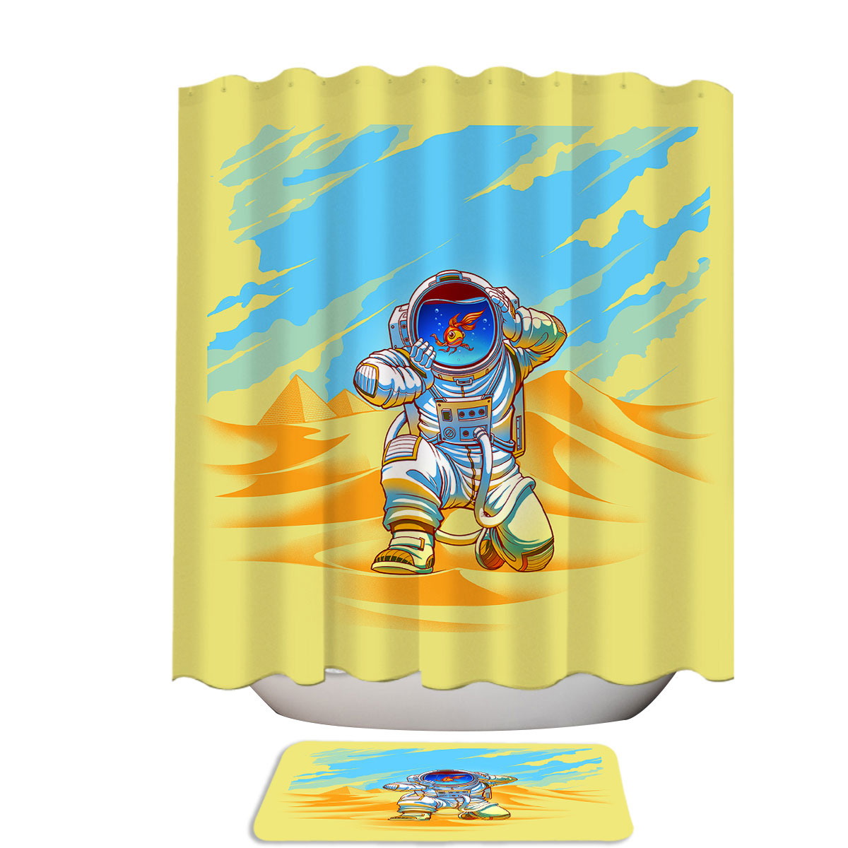 • Shower curtain and bath mat set.