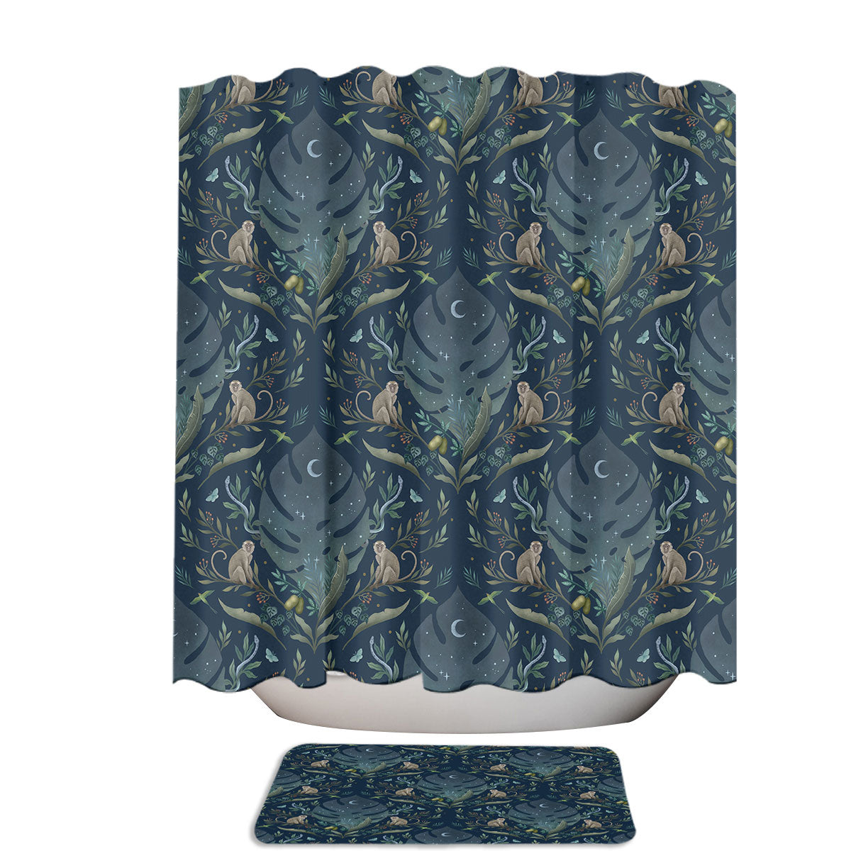 Dark Monkeys and Tropical Leaves Shower Curtain