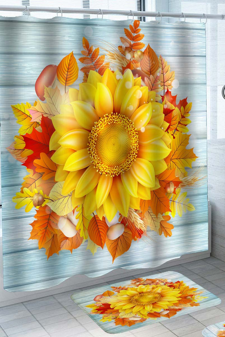 Autumn Leaves and Sunflower Shower Curtain