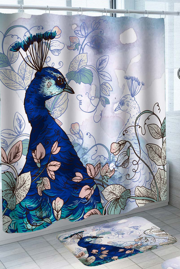 Shower Curtains with Blue Turquoise Peacock Art