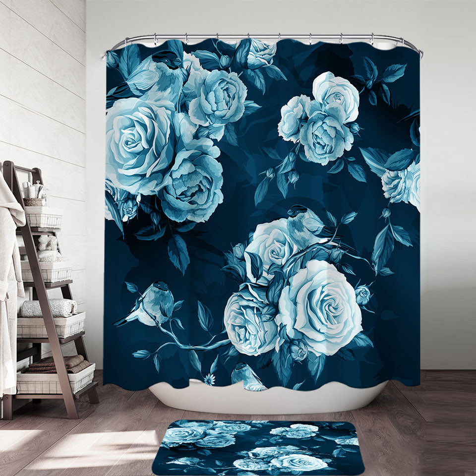 Blue Shower Curtains Dark Blue under Light Blue Roses