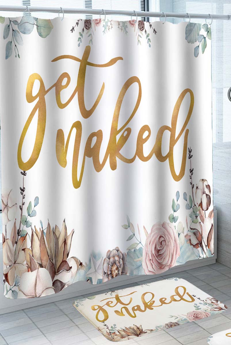 Elegant and Funny Shower Curtains Painted Flowers Get Naked