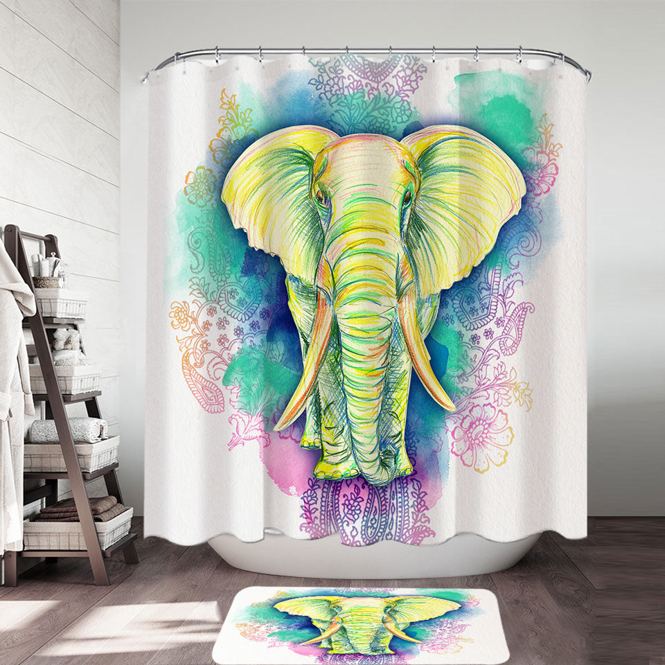 Elephant Shower Curtain Drawing over Oriental Flowers