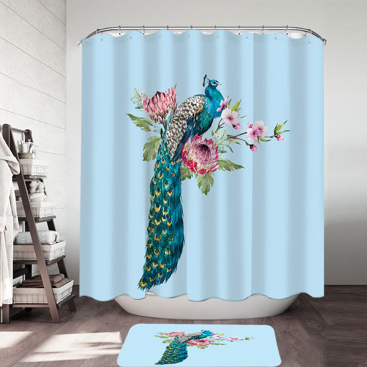 Flowers and Peacock Shower Curtain