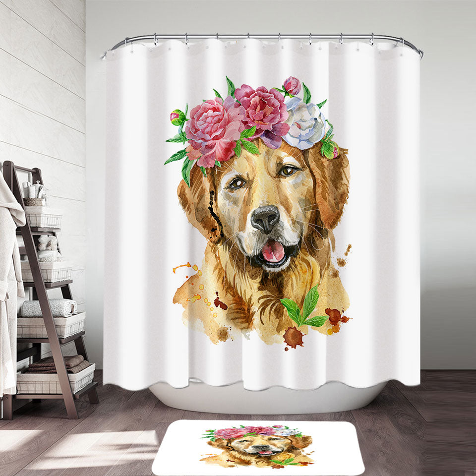Flowery Labrador Dog Shower Curtain
