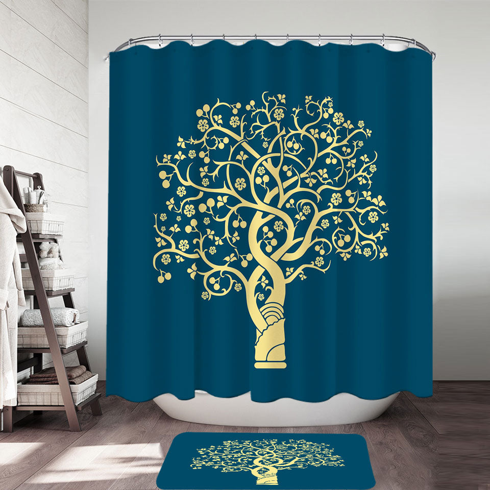 Tree Shower Curtain Golden Yellow Tree over Blue