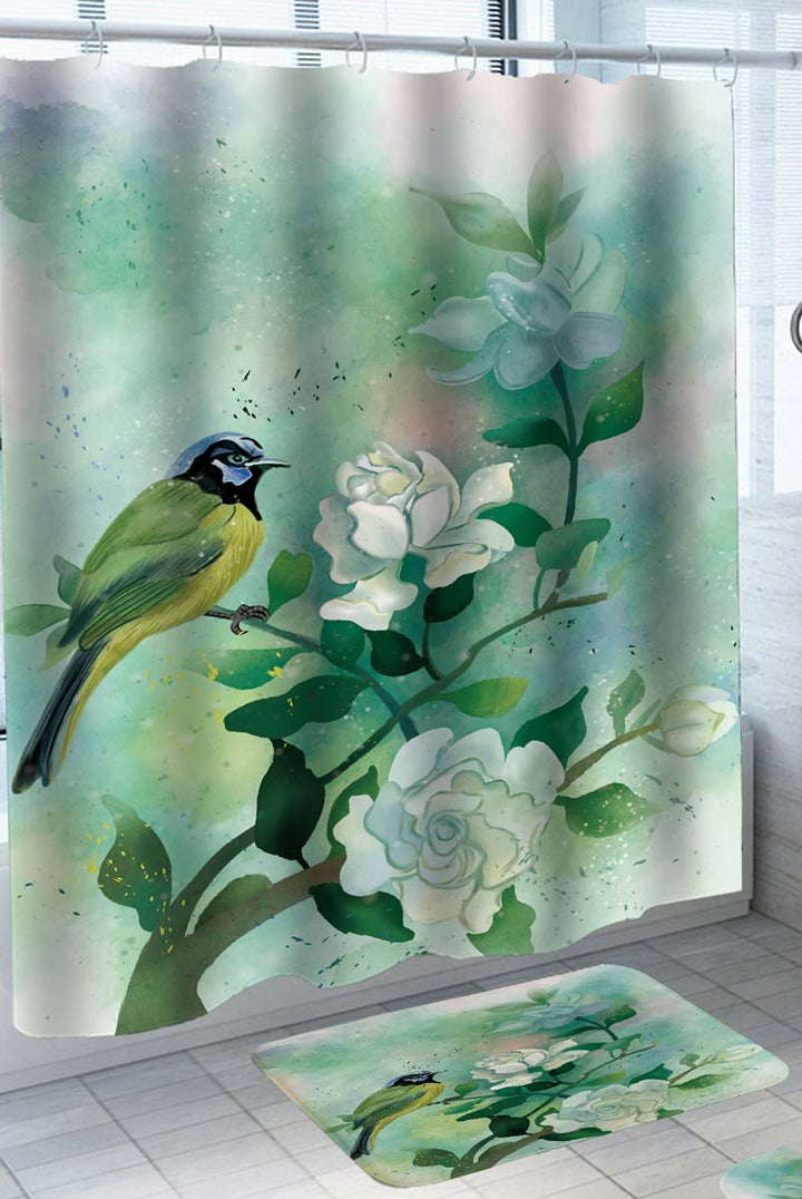 Green Art Painting Flowers and Hummingbird Shower Curtain
