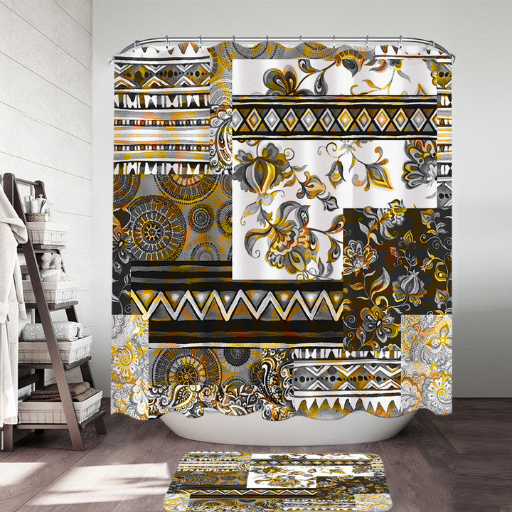 Mandalas and Flowers Golden Black Design Shower Curtain