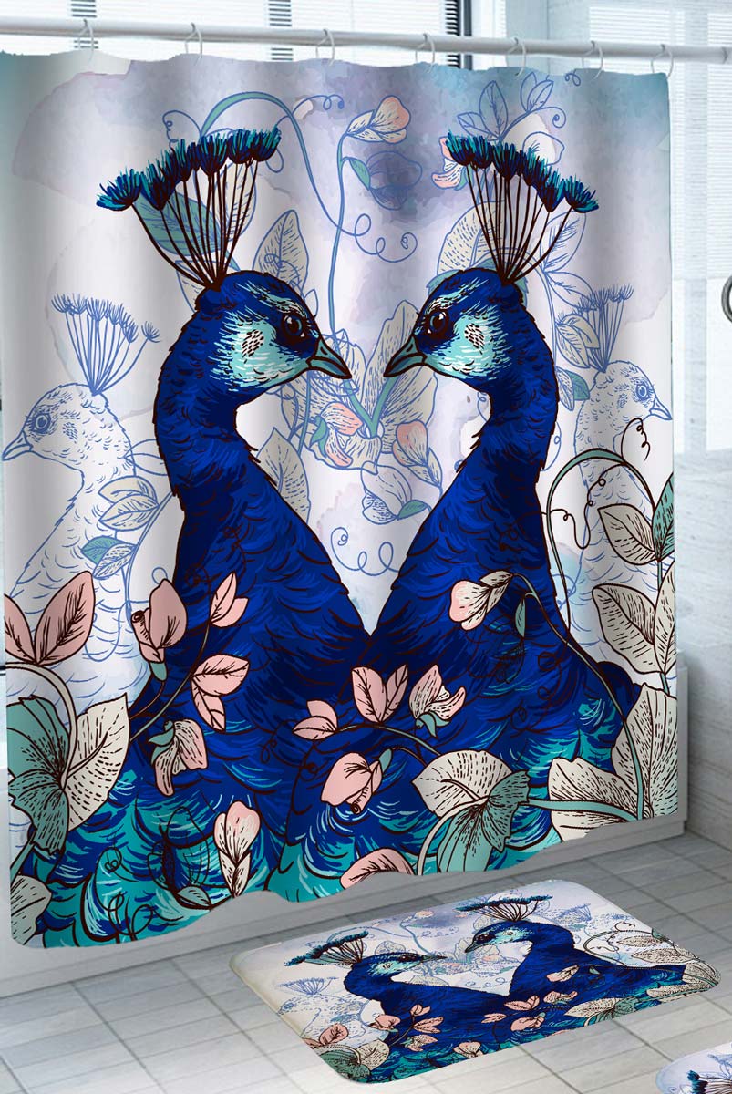 Mirror Effect Blue Turquoise Peacocks Shower Curtain