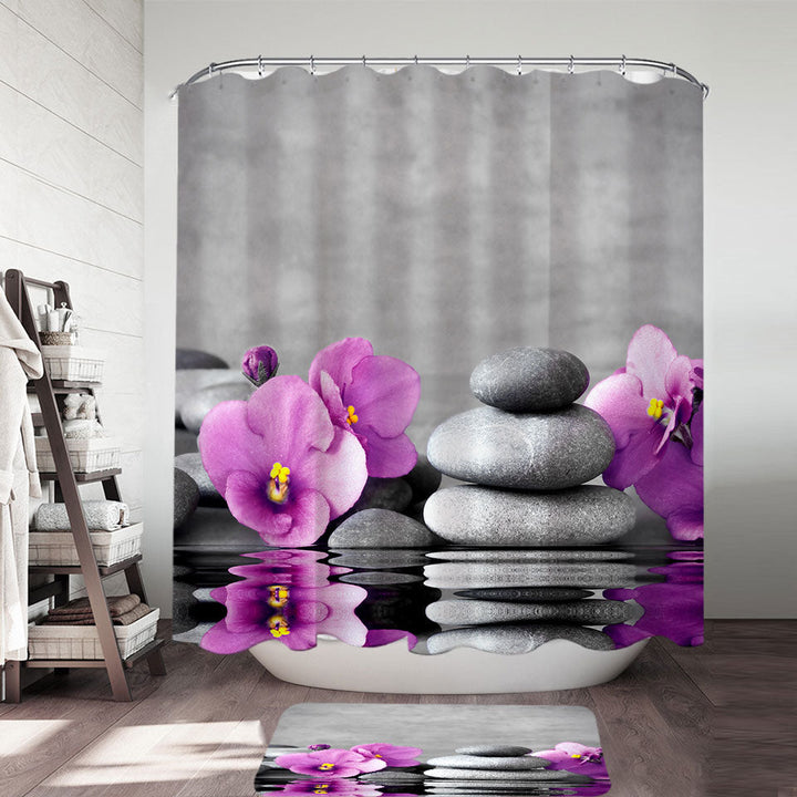 Purple Orchid Flower over Spa Pebbles Shower Curtain