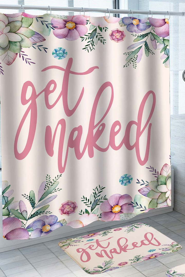 Purplish Flowers Get Naked Shower Curtain and Bath Mat