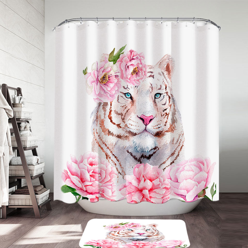 Rosy Lady White Tiger Shower Curtain