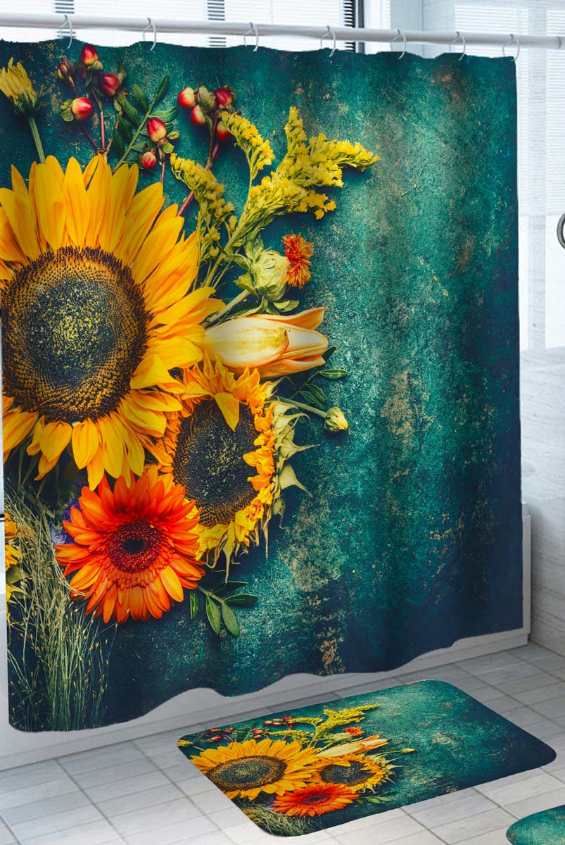 Best Shower Curtains with Sunflowers and Flowers on a Blue Wall