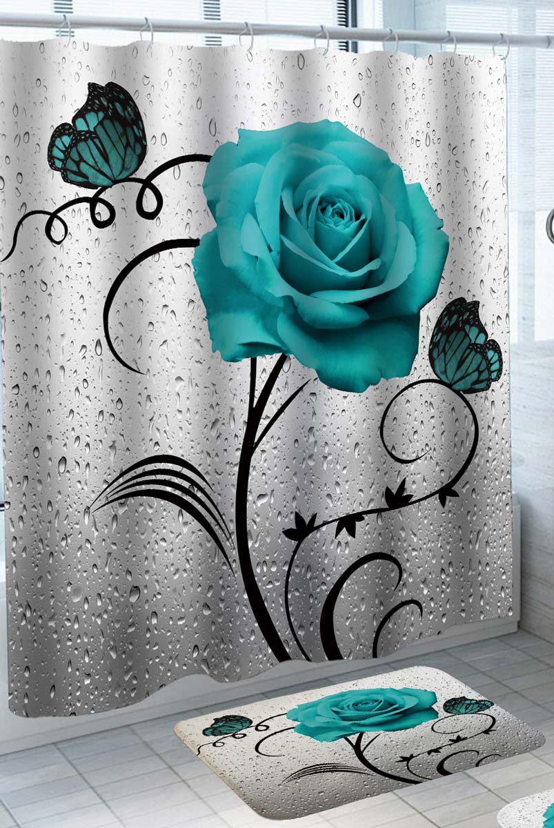 Best place to buy Shower Curtains Turquoise Flower and Butterflies over Rainy Glass