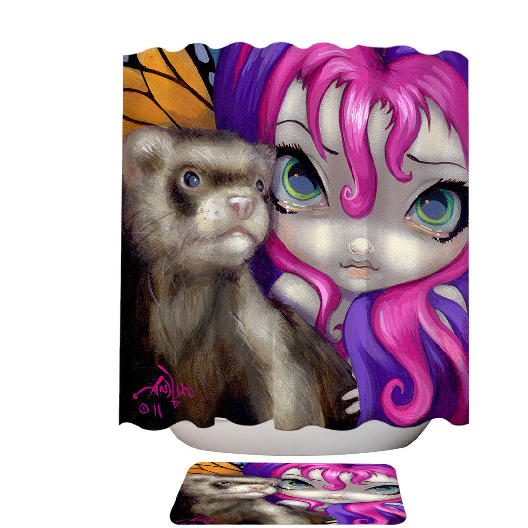 Ferret Shower Curtain Faces of Faery _154 Purplish Girl With Her Ferret
