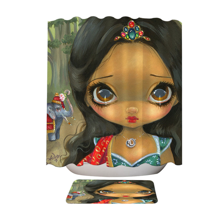 Faces of Faery #192 Indian Princess Girl and Elephant Shower Curtain