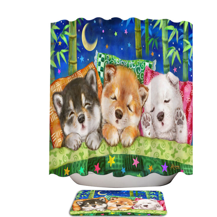 Cute Shiba Inu Dog Puppies Shower Curtains Sleeping