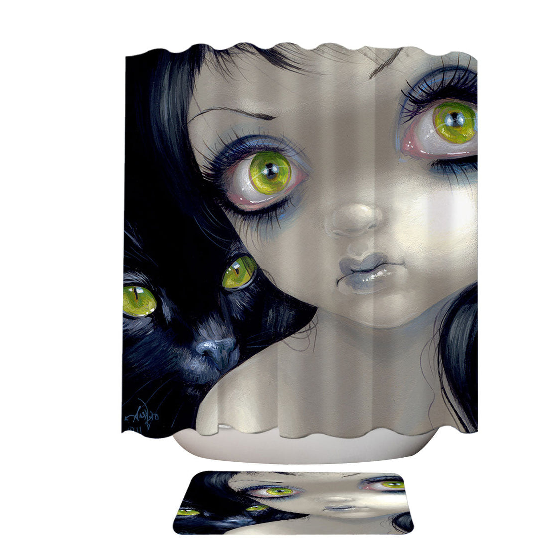 Faces of Faery _170 Beautiful Cat Eyes Girl Unique Shower Curtains