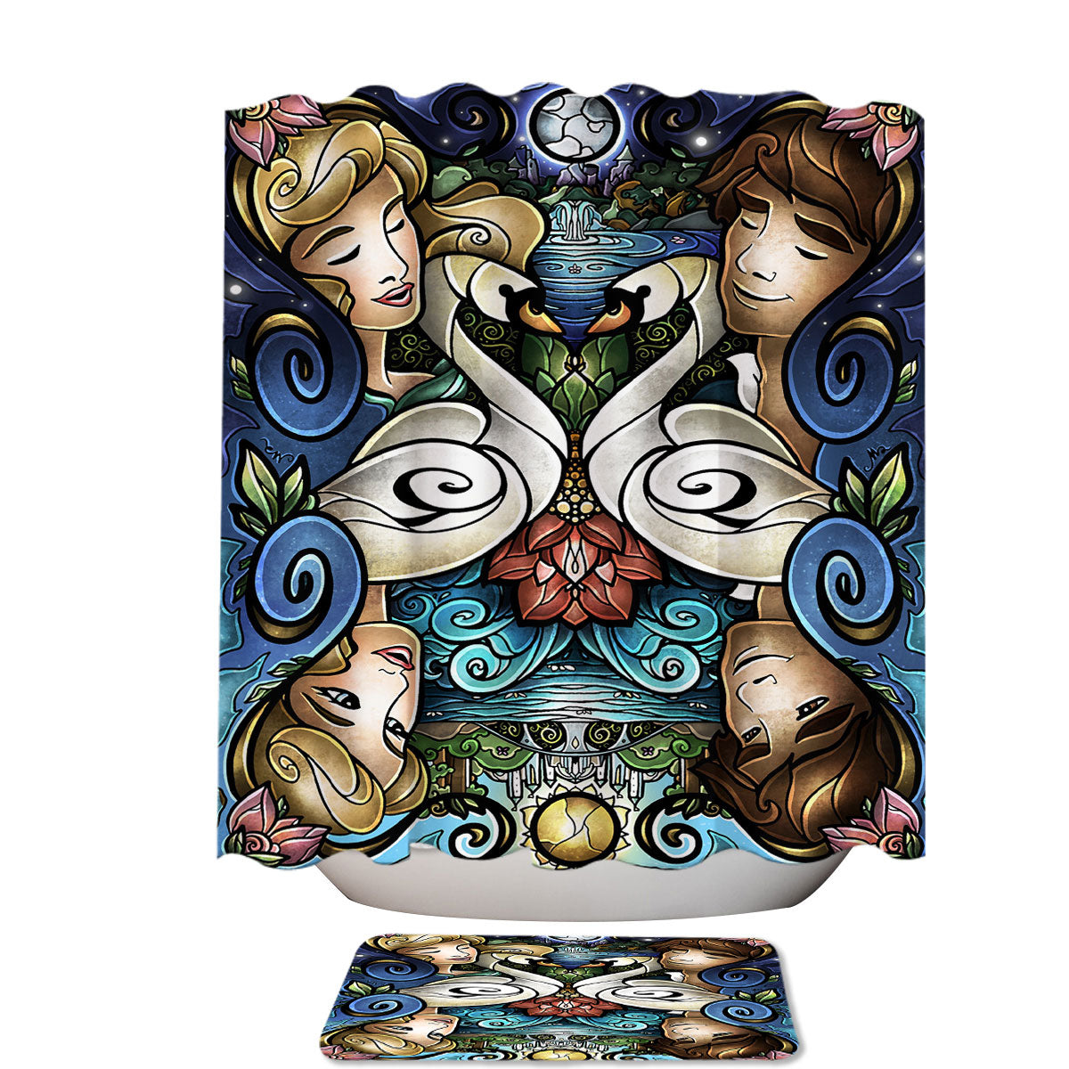 Stained Glass Love Prince and Princess Swan Lake Unique Shower Curtains